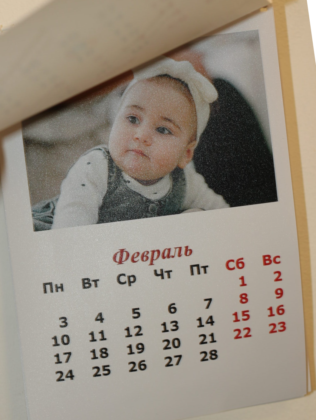 в стоимость стандартного календаря входит титульный лист и 12 страниц. В каждой страничке размешен 1 фотография с календарём спец заказ: можно заказать календарь не из 12 фото а побольше, например 2 или 3 фото на листе, дополнительно в календаре можно отметить важные даты для вас, дни рождении и т.д...